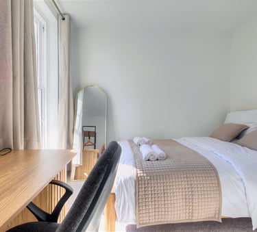 A calm and thoughtfully designed space, perfect for unwinding after a long day.